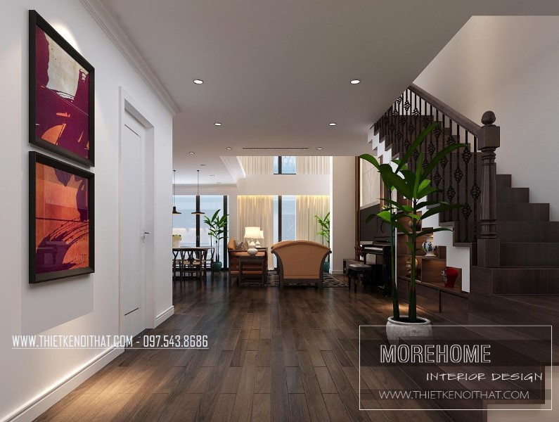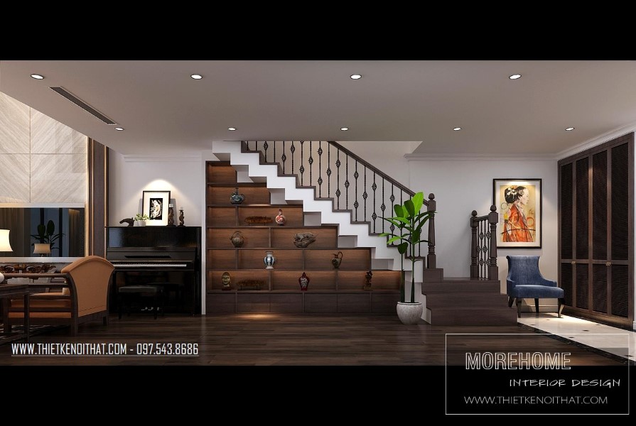 Cầu thang gỗ óc chó căn hộ chung cư DUPLEX tại Hà Đô