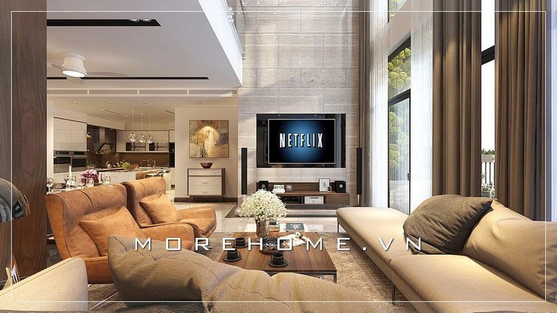 Mẫu sofa hiện đại sang trọng với vỏ bọc da tone nâu trầm tinh tế và dáng văng ba tiện lợi là lựa chọn hoàn hảo cho phòng khách căn hộ chung cư.