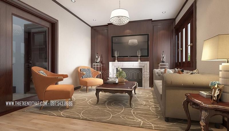 Mẫu bàn trà phòng khách có kiểu dáng tân cổ điển sang trọng, được làm từ gỗ tự nhiên.